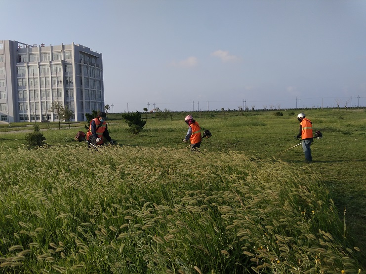 夏季的高温多雨季节,使道路边、绿地草坪的杂草疯长,为保证临港产业区和新城的绿化效果,连日来,南翼公司绿化养护人员冒着烈日酷暑,对区域内的绿化苗木进行修剪,对绿化草坪进行修整,清除杂草,着力打造生态宜居的美丽环境。