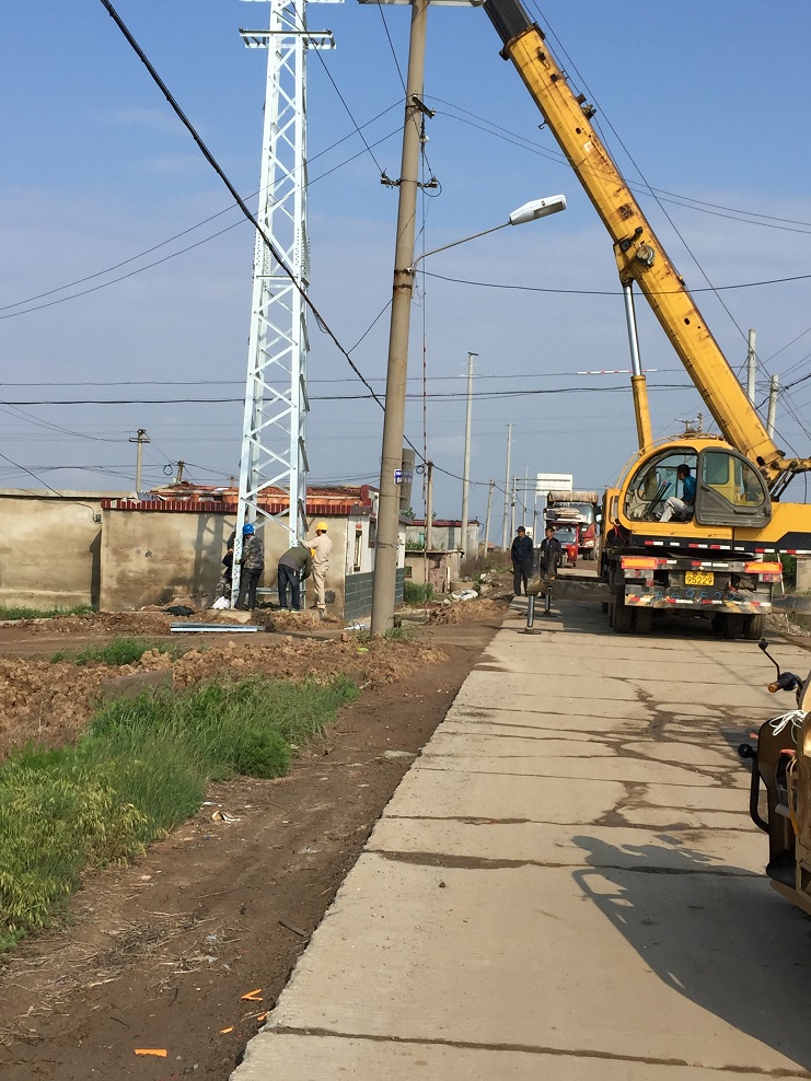 促和谐 共发展 新河制盐协助供电公司架设电网