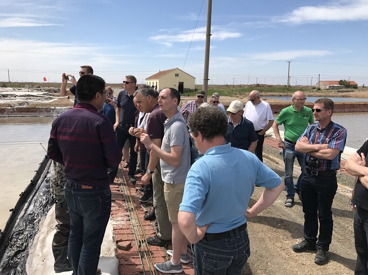 5月24日下午,由北欧农庄公司组织的丹麦农业考察团近30人一行来投资公司参观调研,公司党委办公室主任靳国祥陪同参观。 考察团一行先后到淡水养殖基地、日晒制盐扒盐现场以及五图河小麦种植基地进行了实地考察,每到一处,都仔细询问了生产情况,并详细记录了相关数据。在日晒制盐扒盐现场,靳主任详细讲解了海水制盐与矿卤制盐生产工艺,以及盐业生产、销售、安全等方面政策法规。考察团对我公司取得的成绩给予肯定,并希望建立长效交流机制,进一步加强双方的交流合作。 (绿淮公司)