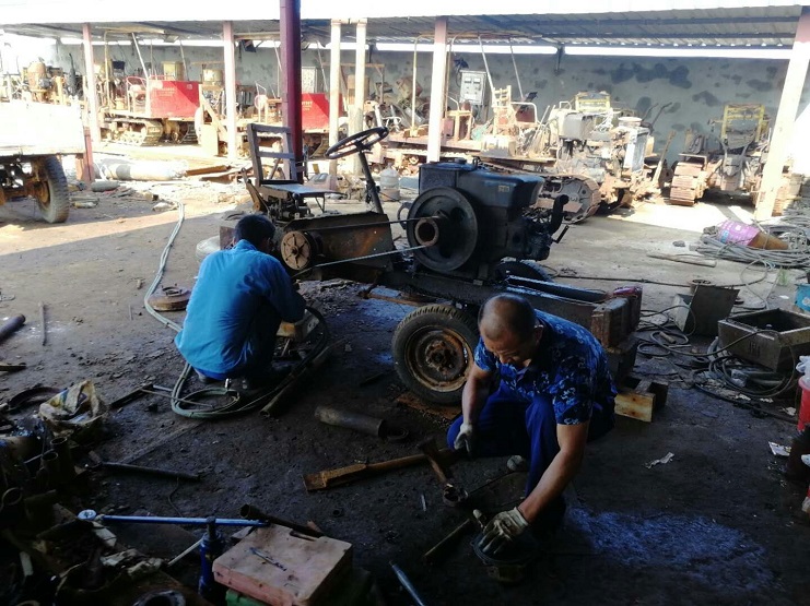 由于小四轮年久太长,零配件老化,严重锈蚀,无刹车,存在着严重的安全隐患,公司按照小四轮损坏情况,购买零配件,为早日完成修理,以备秋扒盐使用,由于近阶段高温天气,维护人员不怕酷暑,加班加点,分工有序,各人忙的汗流浃背,不怕苦,不怕累,赶时间,抢进度,争取在秋扒盐前正常投入使用。 新河制盐分公司:江德前 2018年8月6日