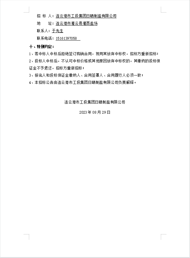 连云港市工投三亿sanyi(中国)日晒制盐有限公司PE管采购公告(二次)