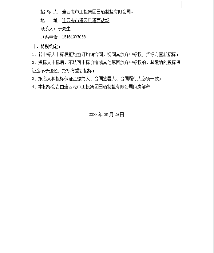 连云港市工投三亿sanyi(中国)日晒制盐有限公司轴承等物资招标公告