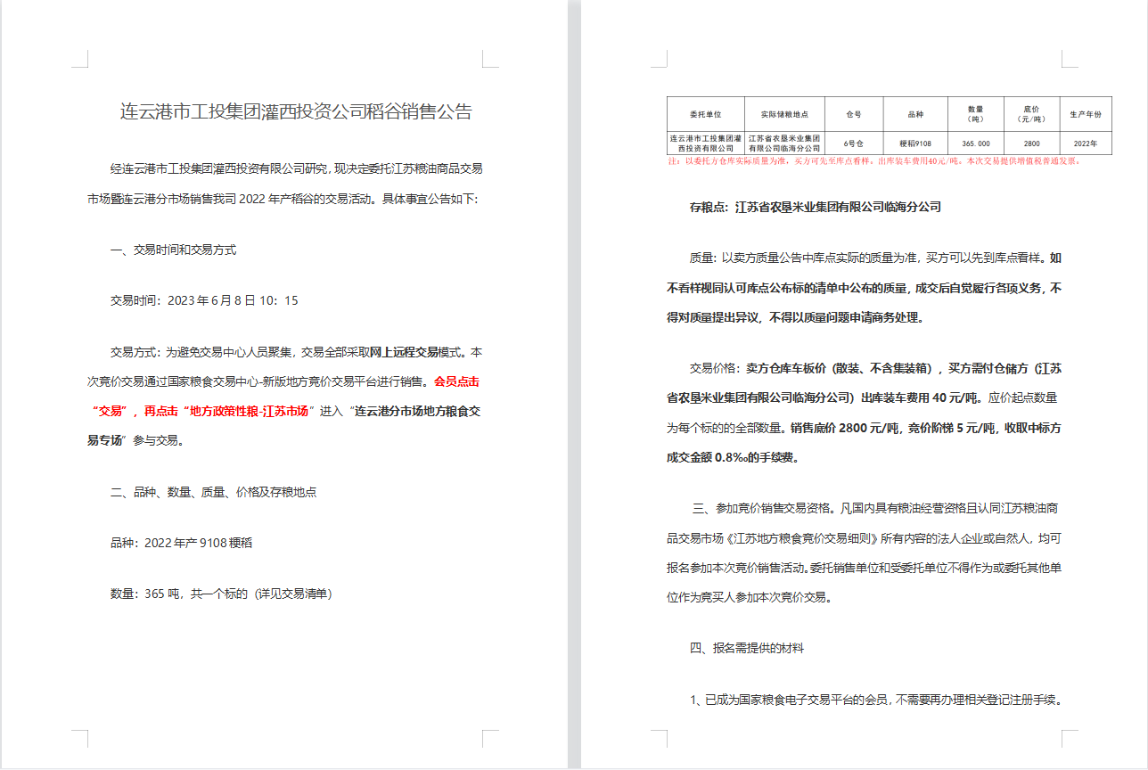 连云港市工投三亿sanyi(中国)灌西投资公司稻谷销售公告