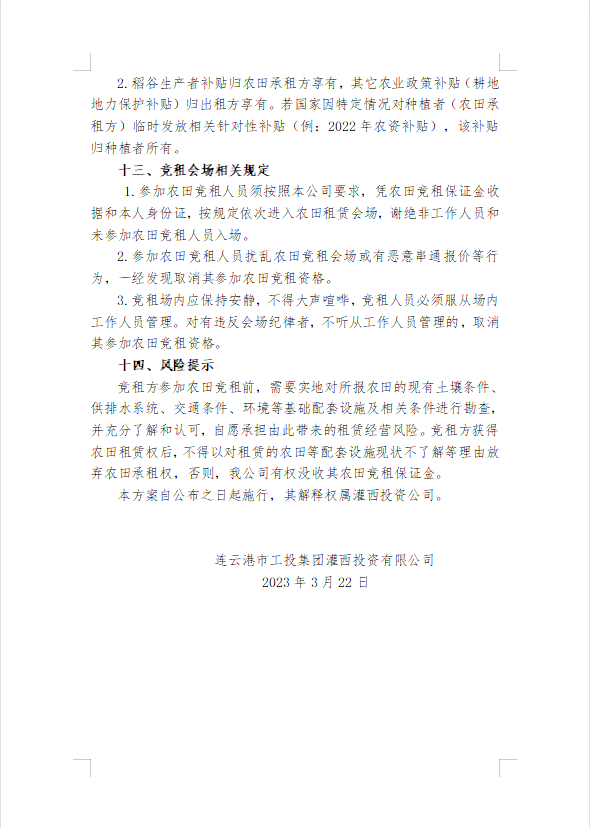 2023年灌西投资公司农田公开竞租三次公告