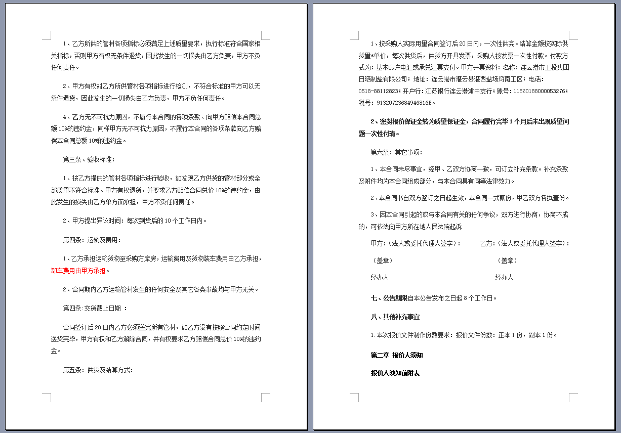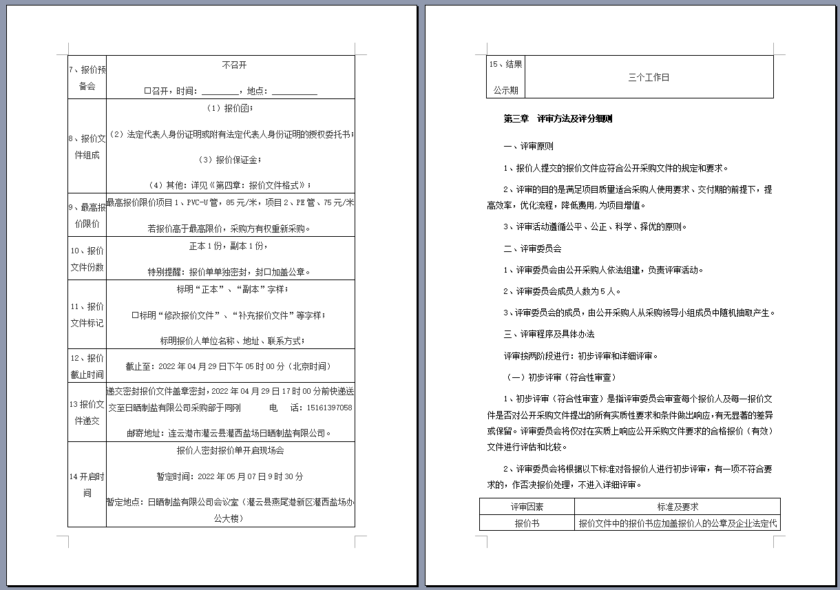 连云港市工投三亿sanyi(中国)日晒制盐有限公司管道采购项目 公开采购文件