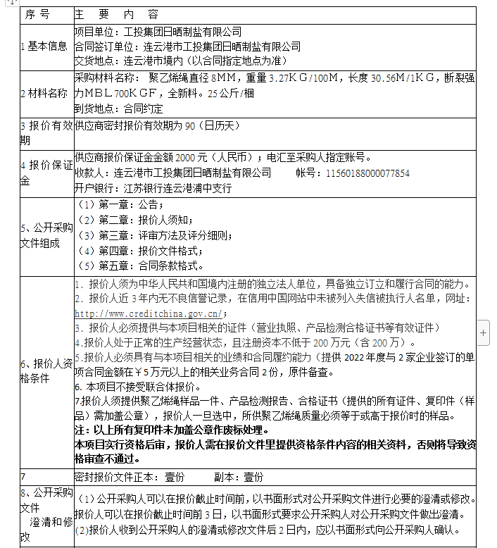 报价保证金接收人:连云港市工投三亿sanyi(中国)日晒制盐有限公司。