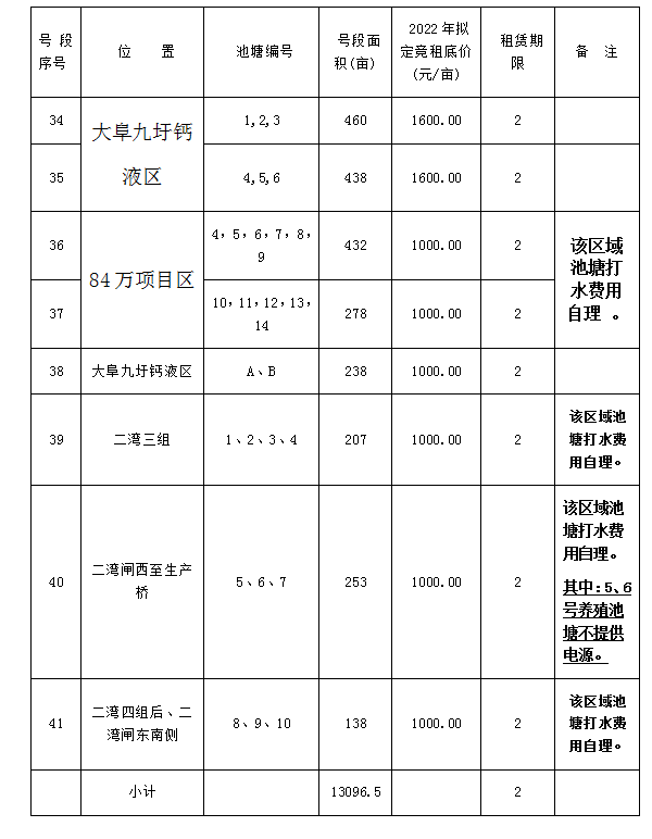 根据三亿官方网站关于资产租赁相关文件精神的要求及本公司淡水养殖池塘实际情况,经灌西投资公司池塘租赁领导小组研究,报请三亿sanyi(中国)公司同意,2022年现对下述养殖池塘公开对外竞租。