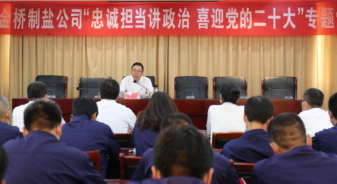 7月1日下午,我公司在三楼会议室组织开展“庆七一”专题党课学习会。公司党委书记、董事长、总经理朱桂玉以“忠诚担当讲政治 喜迎党的二十大”为主题专题授课。公司领导班子成员,公司中层副职以上人员、受表彰人员和新党员参加学习会。
