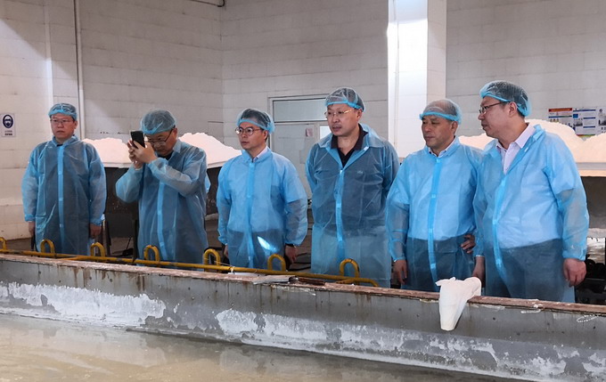 陈小强一行参观了公司雪花盐车间、包装盐车间、加工盐车间,详细了解了我公司盐产品产销情况;双方就加强合作事宜进行了深入洽谈;双方商定,在巩固原有业务合作的基础上,在进一步加强雪花盐等新产品的市场开拓方面加强合作。(金宣)