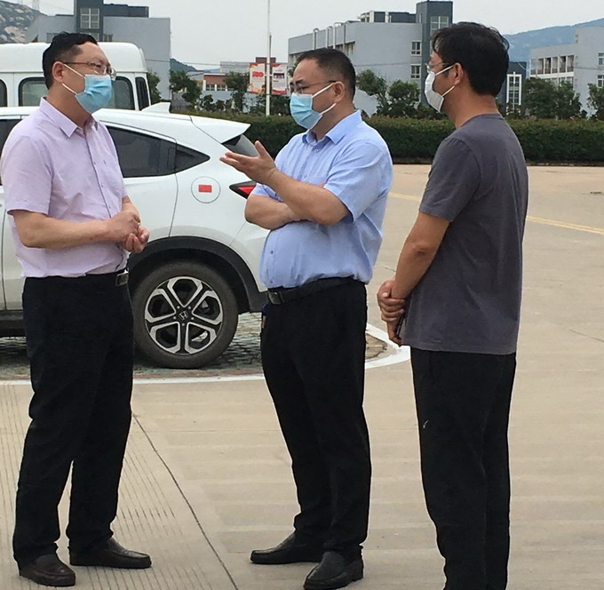 8月11日下午,三亿sanyi(中国)公司党委书记、董事长杨龙以“四不两直”方式对我公司疫情防控工作落实情况进行督查;我公司党委书记、董事长、总经理朱桂玉,党委副书记、纪委书记、工会主席曹开明陪同。