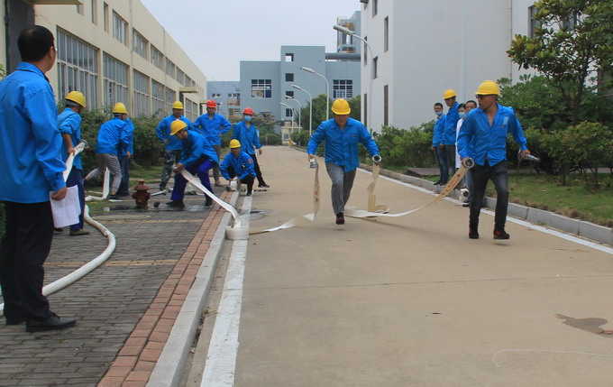 本次演练分为火灾应急疏散演练、消防技能比武和火灾事故应急救援演练三个部分展开。在火灾应急疏散演练中,设定三楼会议室为模拟火灾现场,在滚滚浓烟下,参演人员2分钟内从指定逃生路线规范、有序、迅速撤离到了安全地带。有5支参赛队参加消防技能比武,每支队伍3人,依次进行比赛,发令后,参赛人员按规程接水袋、连水枪、开消防栓、冲向目标、击倒火源点,用时最短者胜出。经过激烈的角逐,最终机关代表队勇夺第一。火事故应急救援演练模拟纸箱库着火,分信息报告、启动应急响应、现场警戒、医疗救护、事故抢险等各处置环节,整个演练紧张有序,过程流畅,达到检验应急预案的可行性和提高应急救援人员的应急处置能力的效果,为完善我公司应急预案提供实践依据。(金安)