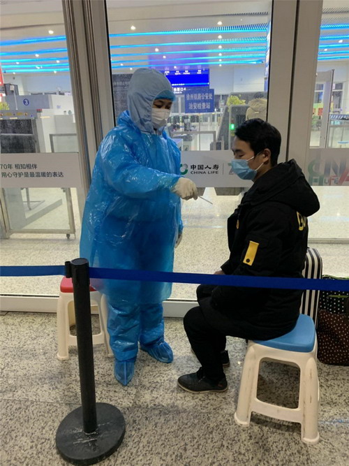 测量体温看似轻松,但是对测温枪反反复复的抬起放下,经常累得胳臂酸疼。除了做好体温检测工作,每天还要回答成百上千名乘客的问题,维持秩序。看似简单的话语、简单的动作,但每天一个班次结束后,几乎都是喉咙嘶哑,她胳膊酸痛。因为工作的需要,几乎每天一直都是站着工作,到家里腿都很僵硬。