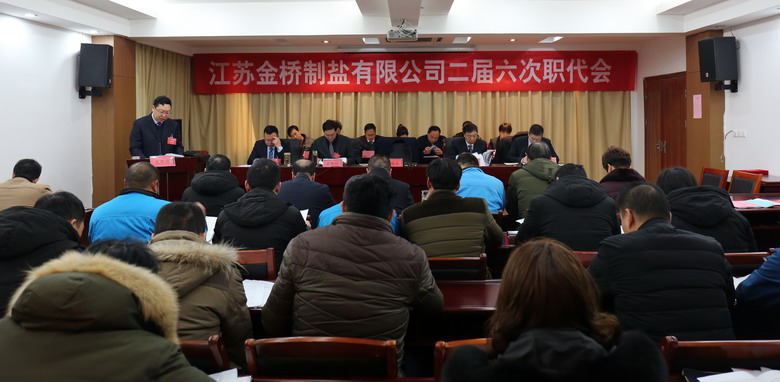 2月15日上午,我公司二届六次职代会在公司三楼会议室隆重召开,来自各车间、单位、部门的46名职工代表参加了会议,共同商讨金桥制盐发展大计。公司领导班子成员及职工代表出席会议,部分先进代表列席会议。公司董事长、党委书记、总经理朱桂玉作工作报告。大会由公司党委副书记、纪委书记、工会主席李昊睿主持。