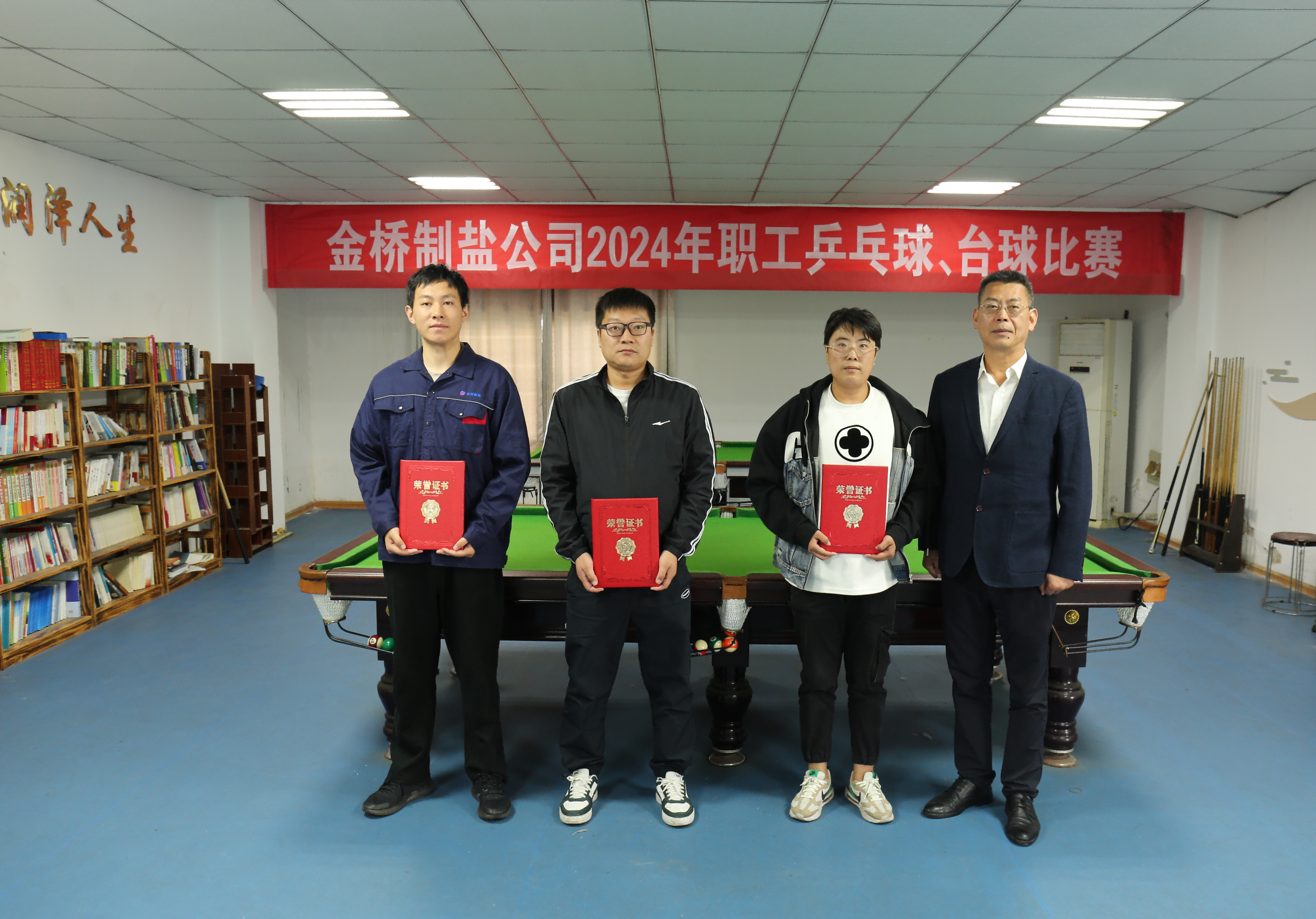经过一天的激烈角逐,孙浩、季如康、张飞获得乒乓球男单前三名,李晓月、沈玲玲、陈从辉获得乒乓球女单前三名,卢超、席小东、于滨瀚获得男子台球前三名,程思洁获得女子台球冠军。(金盐宣)