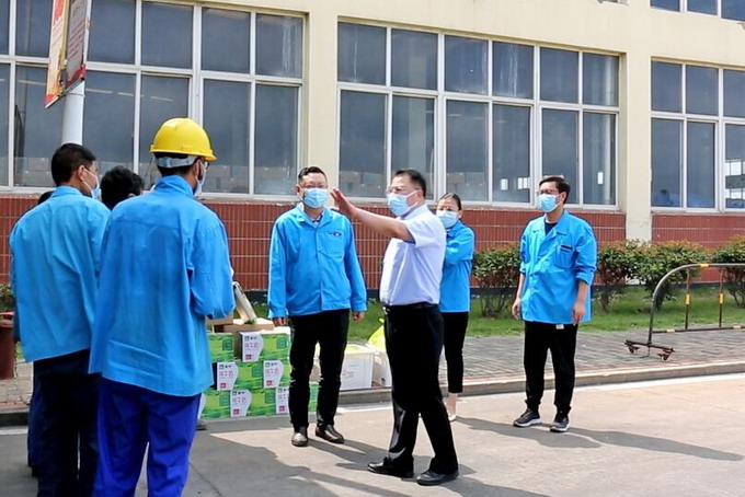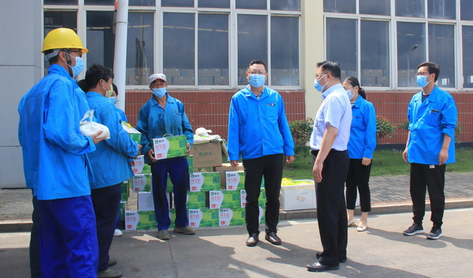 8月3日上午,三亿sanyi(中国)公司党委副书记戴鸿鸣到我公司“送清凉”,走访慰问我公司坚守在高温岗位的一线职工。