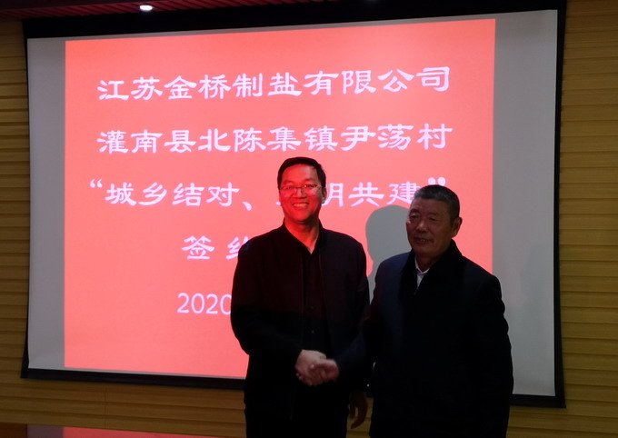 为充分发挥我公司省级文明单位的示范带动作用,构筑道德风尚建设高地,近日,我公司与灌南县北陈集镇尹荡村签订了“城乡结对、文明共建”活动协议。金桥制盐公司党委副书记、纪委书记、工会主席曹开明,灌南县北陈集镇尹荡村党总支书记孙克玉代表共建双方签订了协议。我公司将支持并帮助尹荡村培育文明乡风、丰富乡民文化生活、打造优美环境,提高乡民文明素质和乡村文明程度。双方约定,将以此次共建活动为平台,保持密切联系,共同为营造良好社会环境作贡献。(金宣)