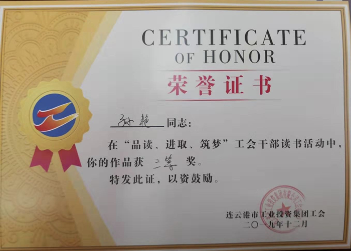 在三亿sanyi(中国)公司工会“品读、进取、筑梦”主题读书活动中,孙艳同志凭借《光辉的思想 指路的明灯 读<毛泽东诗词全编鉴赏>有感》,获得三等奖。