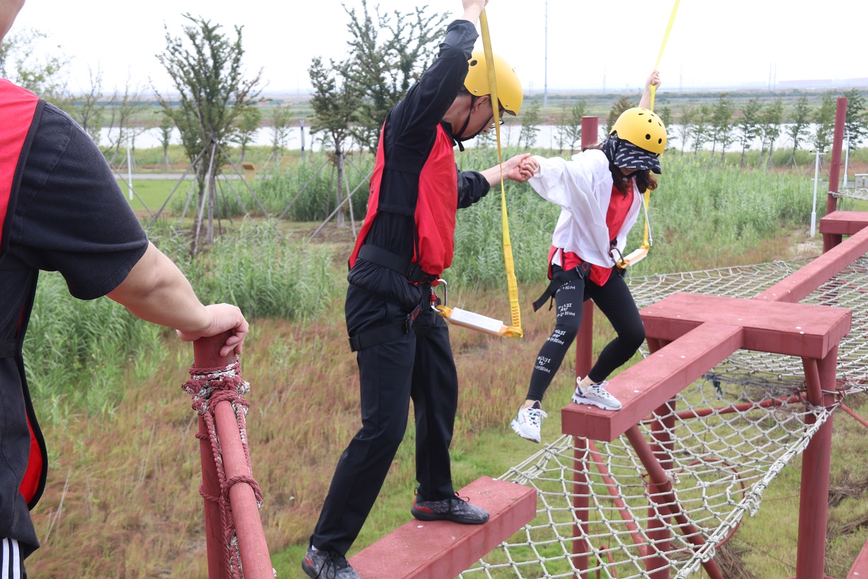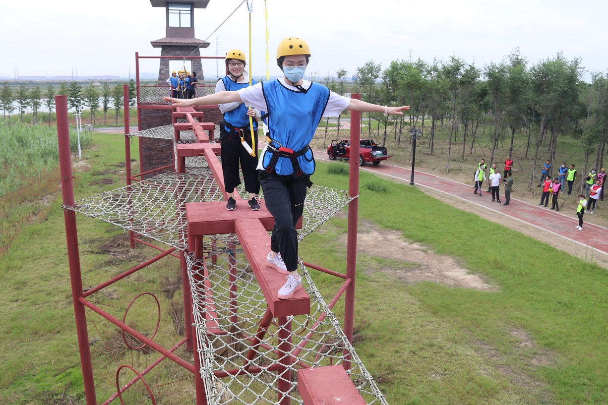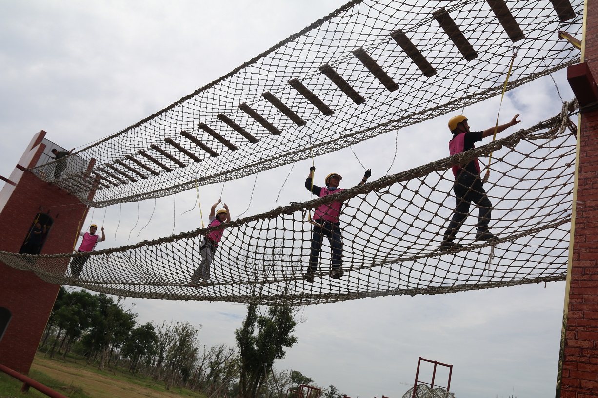 接着,四个小组先后体验了“强渡大渡河”、“飞夺泸定桥”等红色实景教育项目,使广大职工体会到当年红军长征的艰苦环境,感受了重走长征路的氛围,增进了职工之间的团队友谊、锻炼了队员勇于挑战的坚强意志。