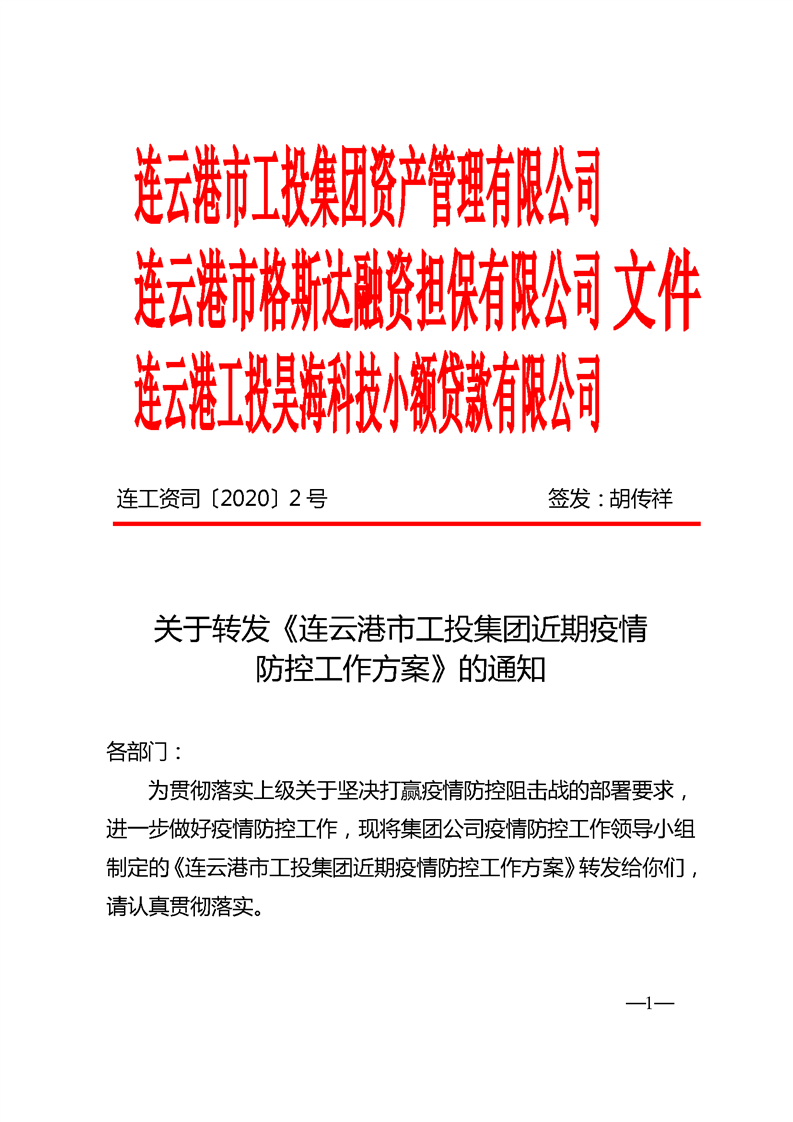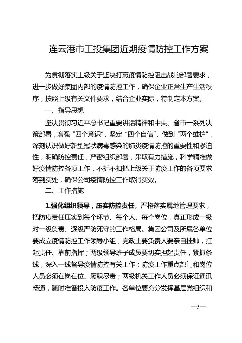 《连云港市工投三亿sanyi(中国)近期疫情防控工作方案》的通知