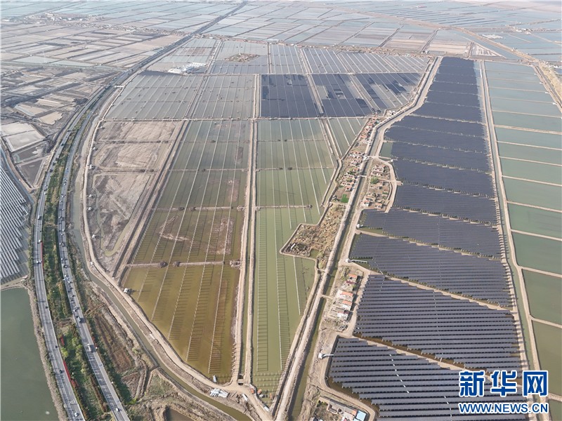近日,在连云港经济技术开发区猴嘴街道三峡青口盐场,近78万块光伏板如波浪般起伏,深蓝色板面倒映着鱼塘的波光,蔚为壮观。