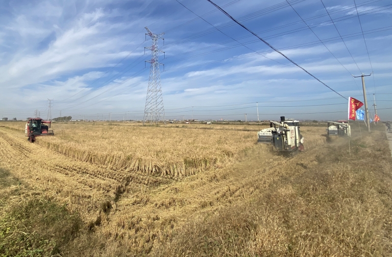 金秋时节,硕果累累。10月28日,青口投资公司大新农场万亩耐盐碱水稻开镰收割。伴随着机械的轰鸣声,收割机在稻田里来回穿梭,将金灿灿的水稻收入囊中,现场一派热火朝天的丰收景象。(大新农场)