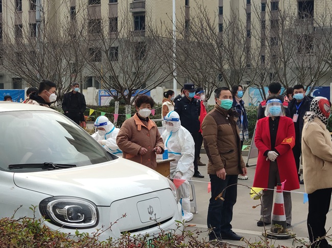 从3月5日起,公司配合社区已陆续启动了5轮重点区域人员核酸检测,及时、高效、科学、有序。“居民朋友们,请提前准备好健康码、身份证,全程佩戴口罩,有序排队,保持距离,等候检测……”在核算测点可以看到,医护“大白”、党员志愿者等各司其职,有条不紊地开展各项工作。参加核酸检测的居民在“小喇叭”的提醒和工作人员的引导下陆续进行检测。排队、测体温、扫码、进入检测区域、依次进行人员登记、采样……整个过程及时、高效、科学、有序。为确保核酸检测做到应检尽检,公司还联合社区开展“敲门行动”,协助配合做好上门信息登记、政策宣传等工作,用实际行动,担当作为,为百姓筑牢了抗疫防线。