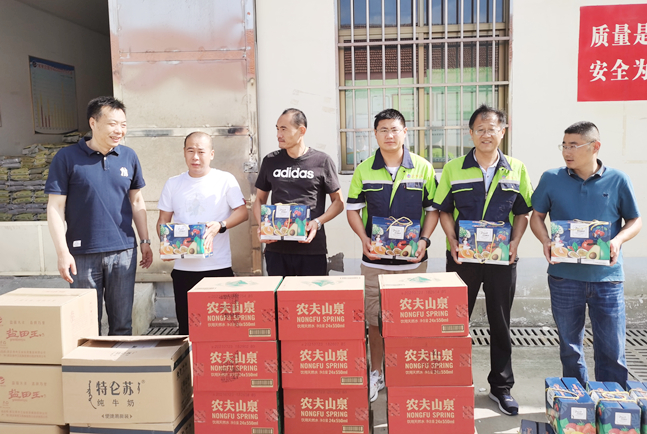 7月30日上午,公司领导班子成员分组带着绿豆、白糖、矿泉水等防暑降温物品,到各基层单位为职工们送去丝丝清凉和滴滴关爱。在慰问现场,领导们亲自为一线职工送上降温物品,并叮嘱他们要提高自我保护意识和安全防范能力,合理安排工作时间,注意防暑休息。