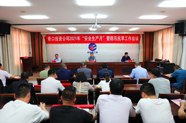 6月1日下午,青口投资公司召开2021年“安全生产月”暨防汛抗旱工作会议。公司领导班子成员,各单位党政工、各部门负责人、安委会成员和分管安全人员、供电所、派出所参加此次会议,会议由工会主席梁永主持。