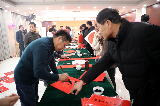春节前夕,喜气洋洋,为了营造祥和欢乐的节日氛围,弘扬中国传统文化,公司邀请连云港市简帛书法协会的老师们来到青口公司,义务为民写春联,送祝福。