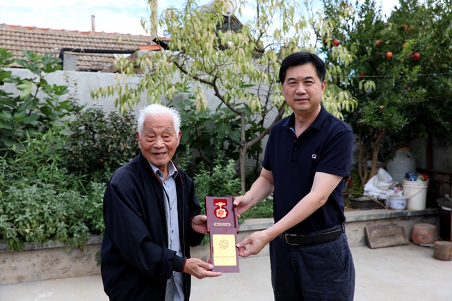 胡书记与分管领导周绪祥一起,来到离休老干部吴建兴和离休老工人张友宝家里将印有中共中央、国务院和中央军委颁发字样、具有浓厚国家荣誉的纪念章送到他们手中,把党中央的关怀送到每一位获得者的心坎上。颁发“庆祝中华人民共和国成立70周年”纪念章是新中国成立70周年系列庆祝活动的重要组成部分,对于加强爱国主义教育,培育和践行社会主义核心价值观,增强中国特色社会主义伟大事业凝聚力和感召力,具有十分重要的意义。据了解青口公司共有14名离休老革命享受这一殊荣,相关部门在节前将亲自送达到他们的手中。(青宣)