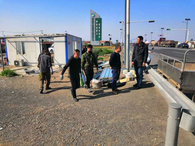 公司领导态度明确,一抓到底全面整治交通环境。摸清形势,多次召开整治工作专项会议,安排部署整治行动 , 公司领导放弃节假日,现场办公。三洋、黄沙、大新作为主要牵头单位,主动扛起责任,挑起担子,从泰祥公司抽调人力,大家齐心协力。按照时间节点,倒排工期,挂图作战,针对现场工作内容,制定 “三步工作法”。一是深入塘头养殖户面对面交流,讲明利害关系,做通群众思想工作,确保整治行动顺利进行;二 是 制定好拆除先后顺序,调配需要的挖掘机、运输车辆等硬件设施,确保拆迁过程快速有力;三 是 对于已拆除的看护房,及时清理房屋碎石块,筑牢地基,安排重建。