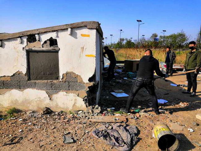“轰隆隆...”位于242道路两侧的看护房旁,不时传来挖掘机拆除房屋的声音。为期四天的五一长假, 青口 投资公司上下一片忙碌,人员、机械高效奋战在环境整治第一现场。