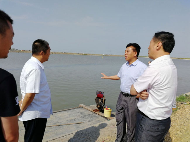 6 月 21 日下午,连云港市海洋与渔业局党委委员石卫东一行到青口公司调研海水养殖情况,三亿sanyi(中国)公司总经济师陈如军、青口投资公司副总经理周绪祥陪同。