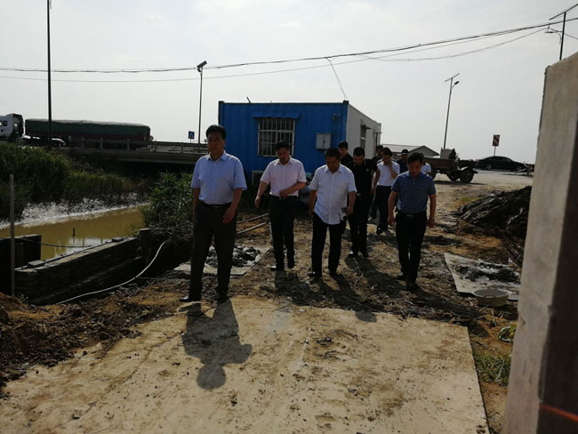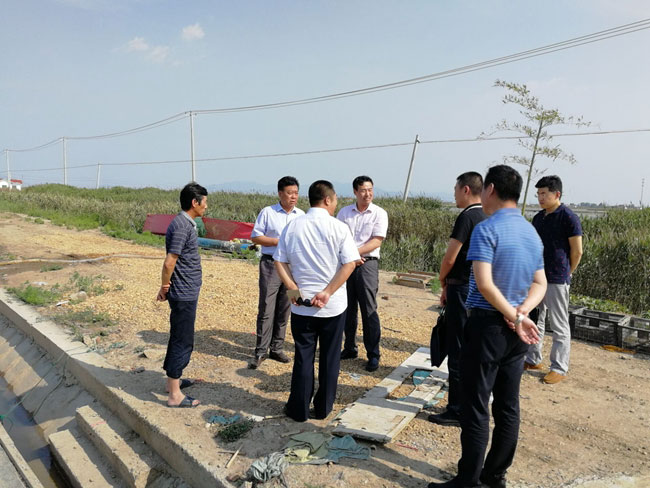 调研团一行首先到养殖大户刘英军的养殖池塘查看养殖现状,随后到三洋排水站查看养殖池塘进排水水系是否有序畅通。