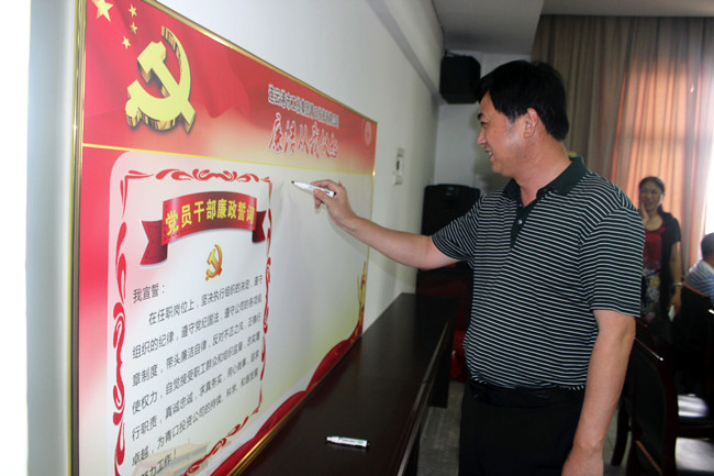 8月28日下午,一场别开生面的“青纪杯”廉政知识竞赛在青口公司举行。公司领导班子亲临现场为选手们加油鼓劲,各部室负责人及来自公司各单位、部门的60余名职工到场观看了整场比赛。赛前,由党委书记胡传法带头,全体在岗党员在廉政誓词上进行签名。