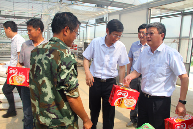 7月20日上午,三亿sanyi(中国)副总经理张其海、总会计师匡友本来我公司大新农场、生态种养中心走访慰问拼搏在农业种养一线的基层职工,为他们送上绿豆、白糖、牛奶及八宝粥等防暑降温品。投资公司董事长、党委书记胡传法、党委副书记、副总经理史祥平、副总经理周绪祥陪同慰问。