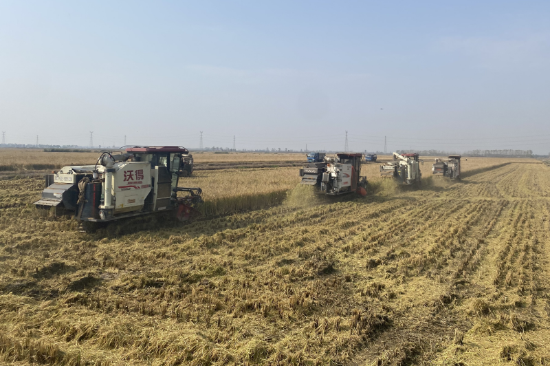 雨后初晴,大新农场抢抓晴好天时,科学统筹,减损提速,近20台收割机“尽锐出战”,纷纷下田抢收水稻,切实保障机收作业不停歇,抢收颗粒归仓。 (王璐)