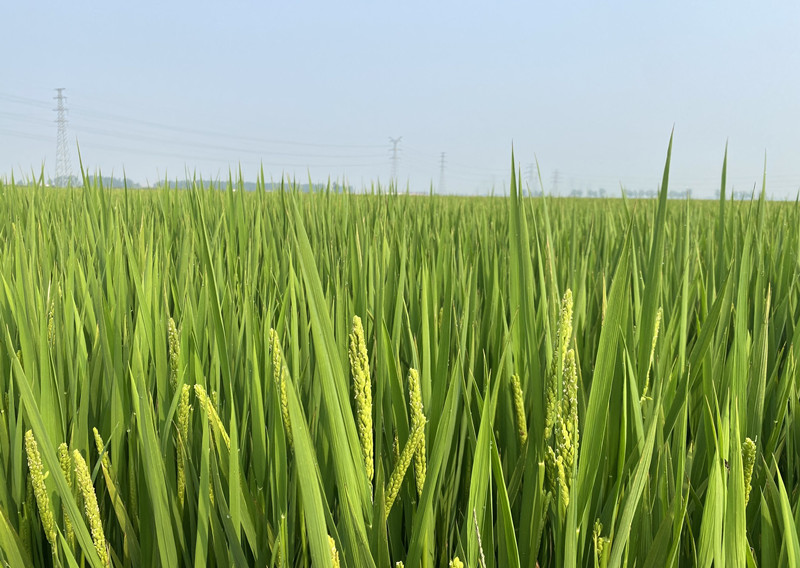 近日,大新农场1000余亩自种自营水稻示范区水稻长势喜人,田野上稻花飘香。正值水稻抽穗扬花期,农场管理人员根据重要农时到地头查看苗情,目前抽穗率达到百分之六十,预计中旬抽穗完成。(王 璐)
