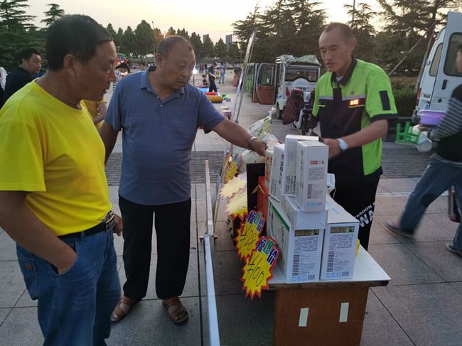 近日,米业营销中心在赣榆区体育场夜市摆起了“地摊”。为了扩大“盐田玉”品牌在本地的认知度,进一步巩固本地市场,米业营销中心采用“地摊”的形式开展产品营销宣传活动,本次活动既是对国家“地摊经济”号召的响应,同时也是米业人开拓市场的一次新尝试。活动中,工作人员通过发放宣传单页、播放音频等方式深度宣传盐田玉大米,将“盐田玉”的品牌植入人心,更好的为升级未来市场做好铺垫。
