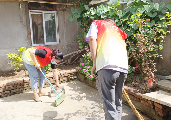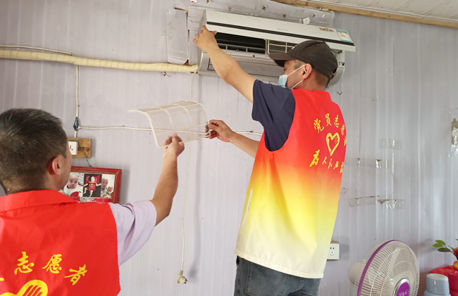 在困难老人家中,党员志愿服务队力所能及地帮助他们进行卫生打扫、电器维护等服务,用实际行动将温暖送到群众心坎上。