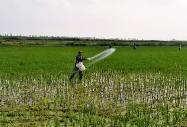 (对秧苗进行撒施分蘖肥)