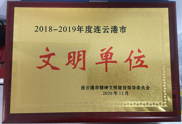 近日,连云港市精神文明建设指导委员会公布了2018-2019年度连云港市文明单位新命名名单,神特公司榜上有名,被评为“2018-2019年度连云港市文明单位”。