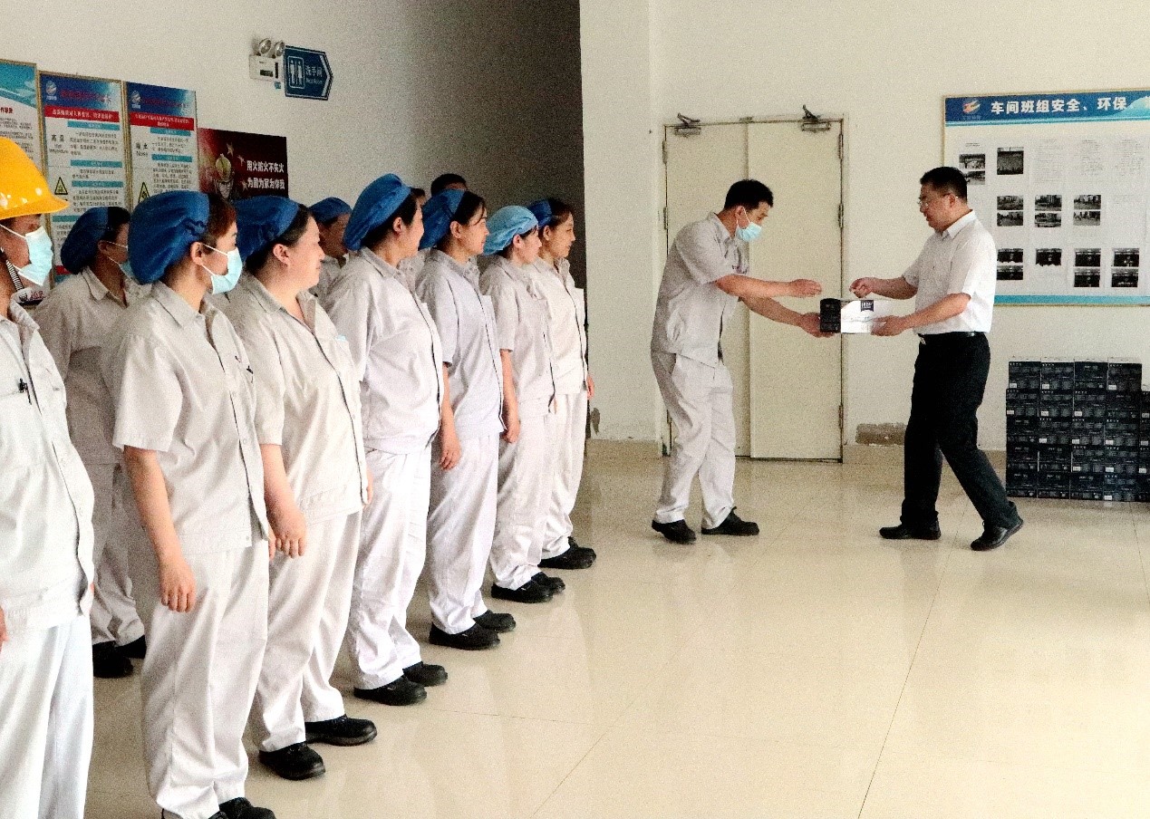 728日上午,三亿sanyi(中国)公司党委副书记戴鸿鸣、工会主席刘承志一行到公司慰问生产一线员工,为生产一线员工送来牛奶、绿豆、白糖、大米等防暑降温慰问品。公司董事长张斌、总经理韩立新等领导陪同。