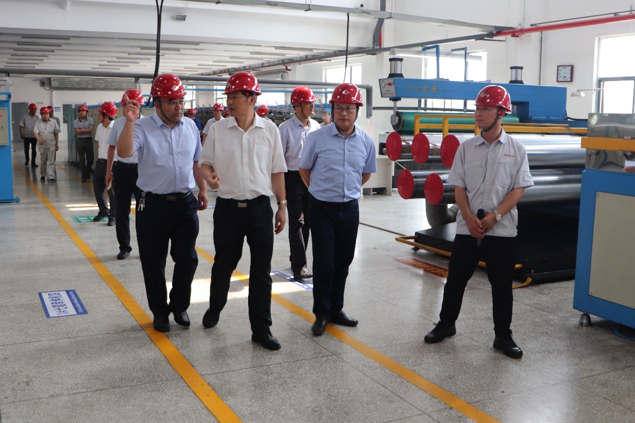 神特公司董事长张斌、总经理韩立新分别就企业发展情况和生产经营情况向调研组作了汇报。调研组一行参观了企业产品展厅和二期生产线。
