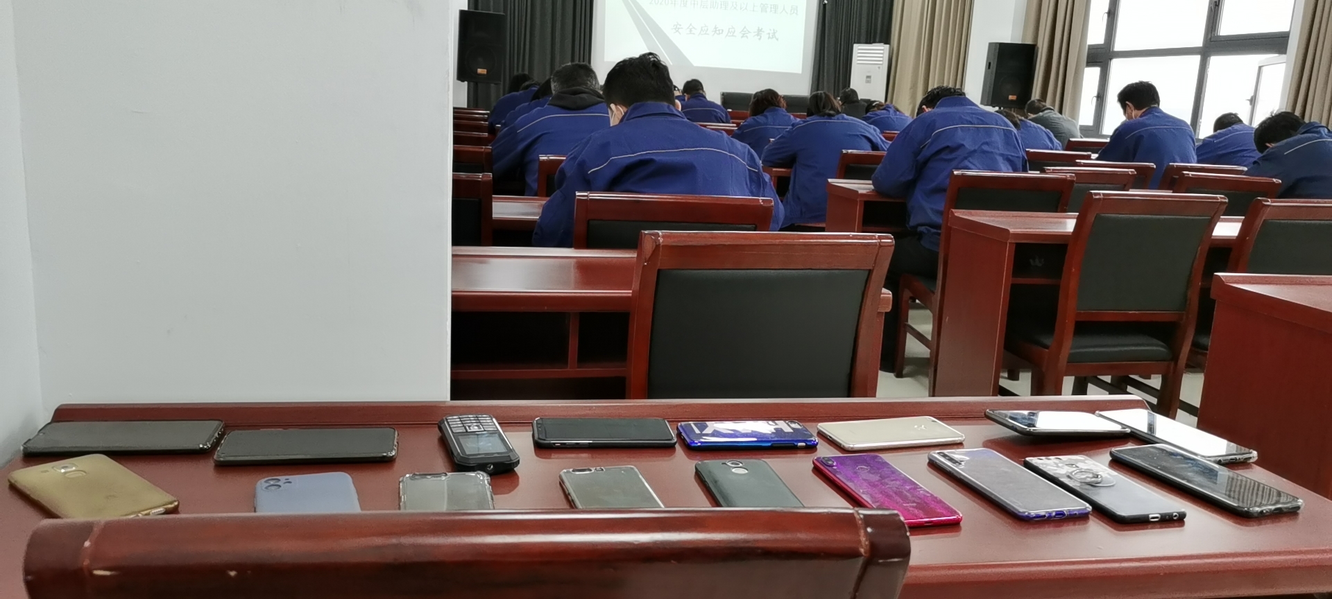 本次考试一人一桌,采用闭卷考试的形式,测试参试人员关于《安全生产法》、《江苏省安全生产条例》、三亿sanyi(中国)应知应会材料、公司安全风险告知等知识的掌握情况,切实有效的加深了管理人员对安全知识的记忆,提高员工安全意识。
