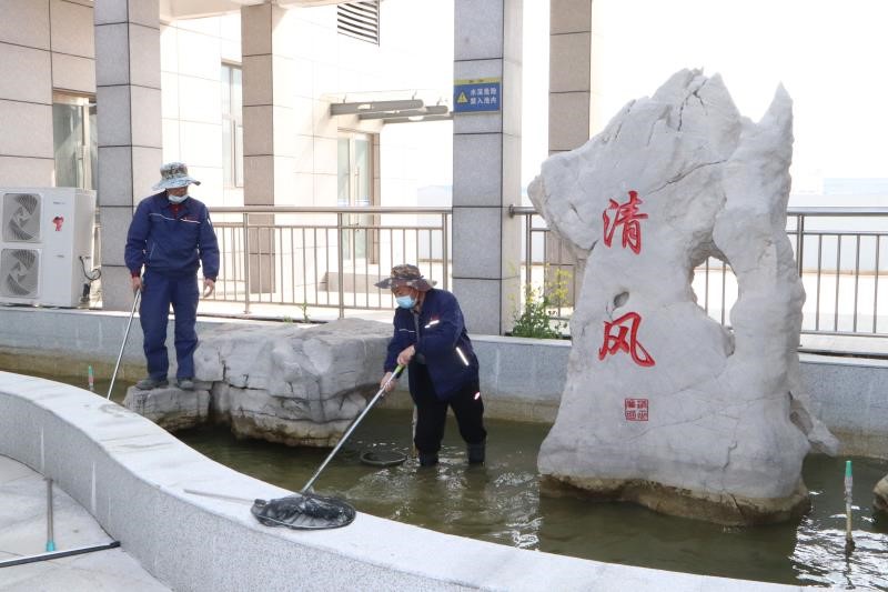 “春风凌冽,水波荡漾”,4月16日下午,公司综合办公室牵头带领后勤工作人员,对“清风池”及周边区域开展义务清淤整治工作。