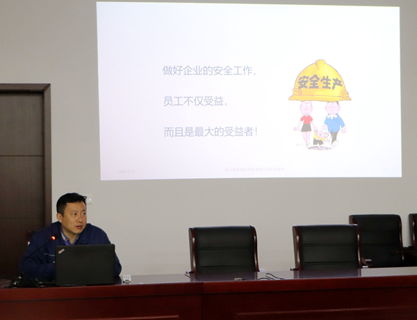 为提高生产车间一线职工的安全意识,增进一线职工对新增安全设施的了解,3月17日上午,公司工会联合安全管理部开展了题为《把握安全,拥有明天》的安全知识讲座。公司副总经理王爽芳、三个生产班组职工参加了讲座。公司工会主席袁忠主持讲座。