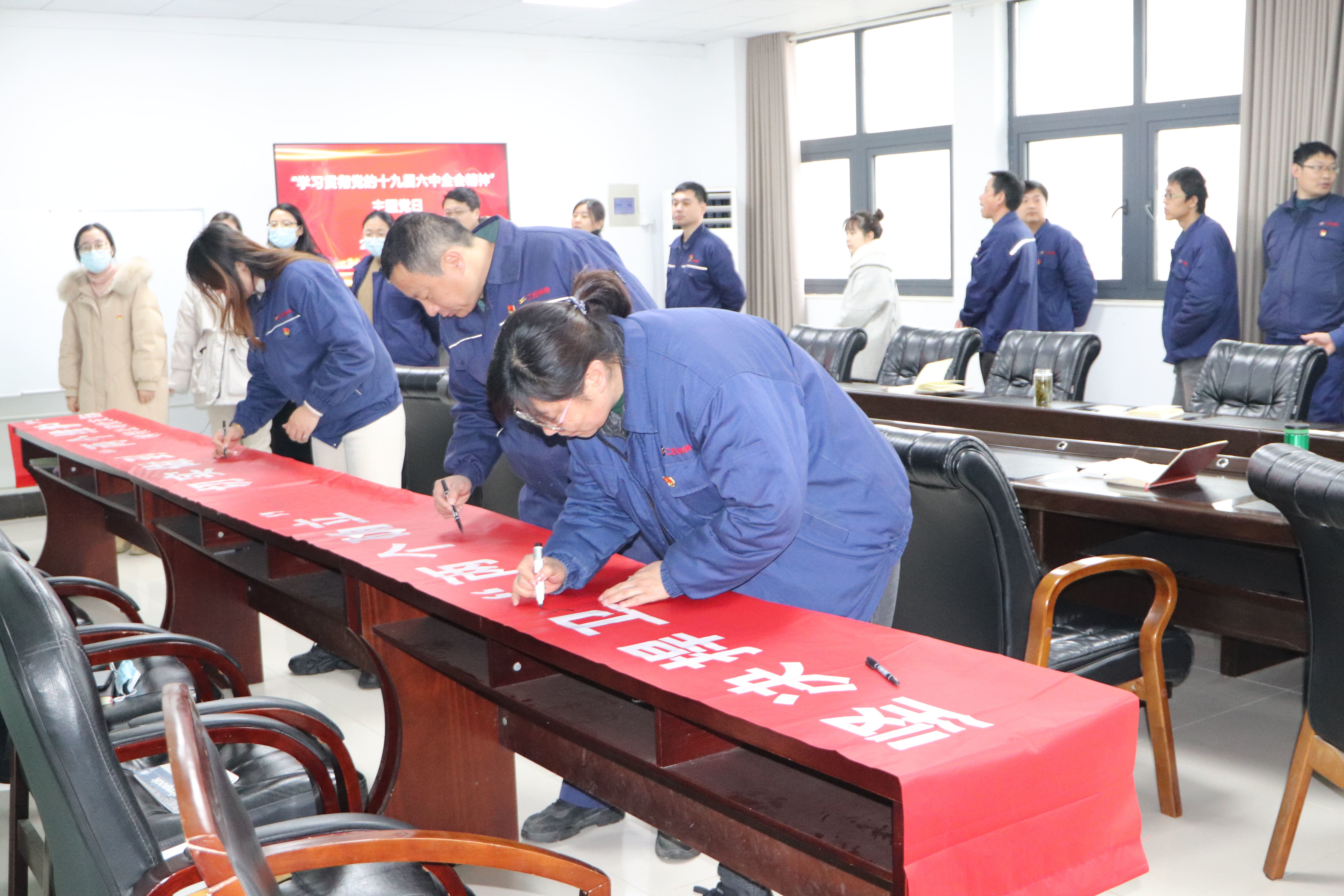 主题活动上,党支部副书记袁忠带领全体党员重温入党誓词,并开展坚定捍卫“两个确立”、切实做到“两个维护”践诺签名活动。随后,全体人员认真学习《中共中央关于党的百年奋斗重大成就和历史经验的决议》。与会党员踊跃发言,结合学习内容,联系工作实际,交流思想认识和意见建议。