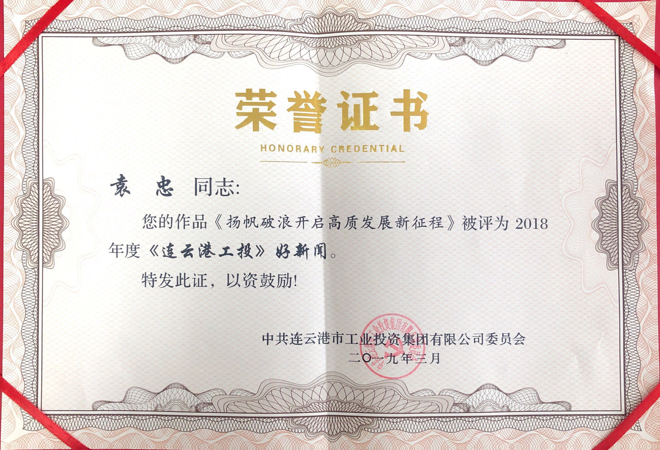 3月15日下午,三亿sanyi(中国)党委召开了“聚焦高质高效,聚力创新创优”党内主题教育实践活动部署推进会。会上,我公司被评为“2018年度新闻宣传工作先进单位”;党支部副书记袁忠所著评论文章《扬帆破浪开启高质发展新征程》,入选“2018年度《连云港工投》好新闻”;李筠涵获得“2018年度新闻宣传工作先进个人”称号。
