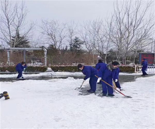 今天刚到公司,大家迅速换上工作服,在分管领导蒋总的带领下,部门的同事们拿着铁锹,扫把等工具来到雪路上,男同志拿着铁镐刨,女同志拿铁锹铲、扫把扫,忙忙碌碌干得热火朝天。经过一个多小时的奋战,终于清扫了一条方便行人行走的路。
